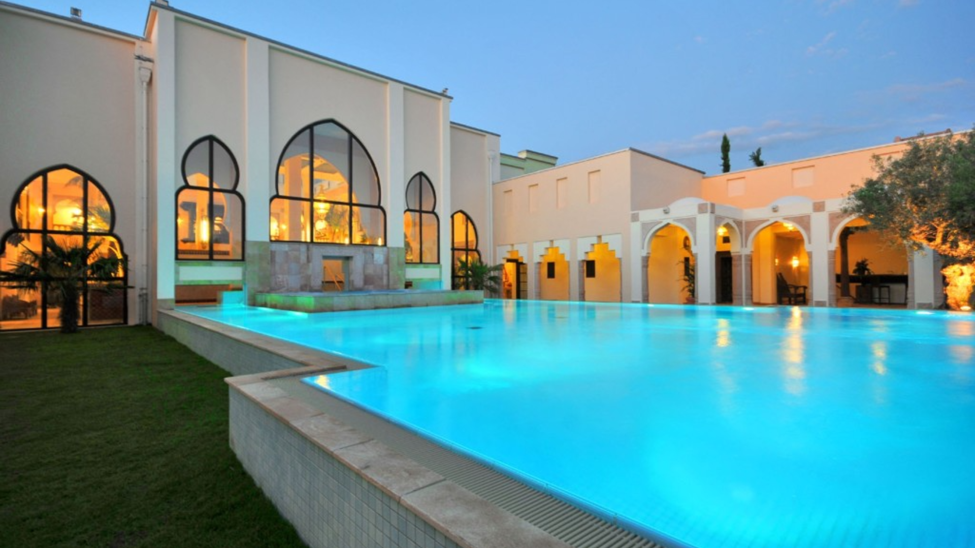Die Liebe zum Detail zeigt sich in jeder Ecke: handgeschnitzte Türen, orientalische Lampen, kunstvolle Kuppeln und gemütliche Ruheräume lassen dich den Alltag vergessen.